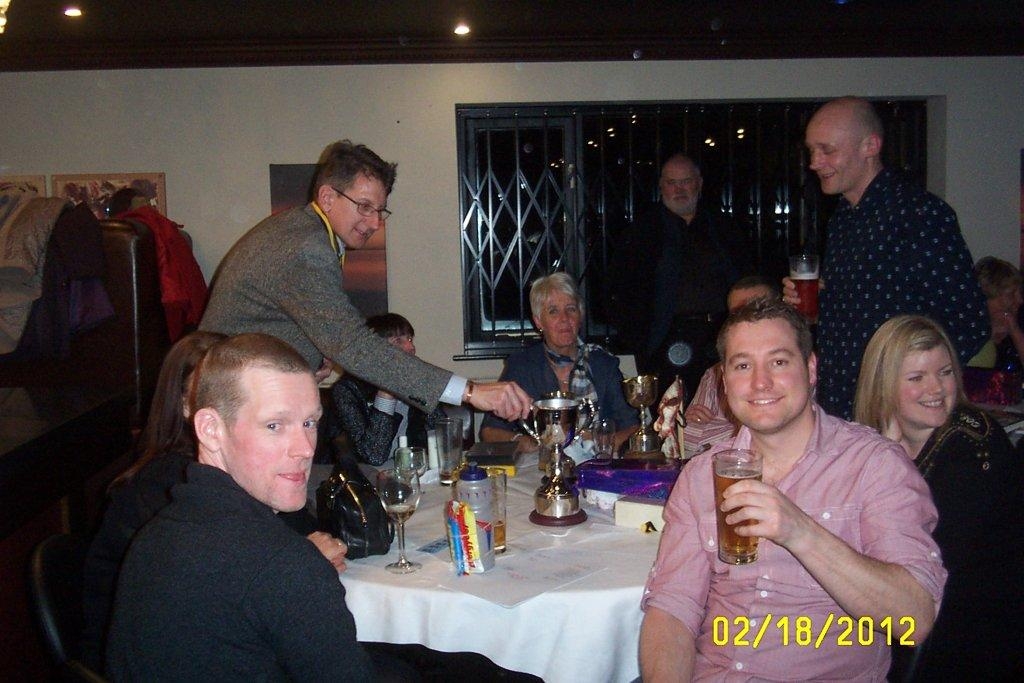 | Matt Churm (with Claire obscured), Jonny Croston & Rebecca . Michael Vennard (reaching for trophy).
