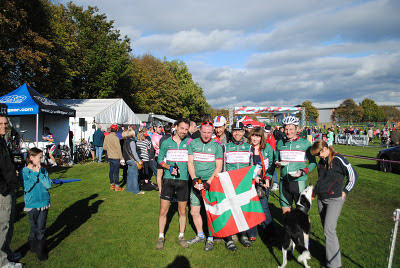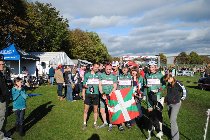 Adding considerably to the atmosphere was a Basque flag weilding, Belgian beer bottle clutching bunch of rowdies from Saddleworth Clarion. Many had ridden over ‘the hill’ and four competed in the Vets and Senior races, Including the “Emu of Toledo” who is legendary in Calder Clarion circles. Indeed many had made the journey from Wakefield just to catch a glimpse of this luminary, aka Chris Moreman. Michael Vennard and Matt Dodsworth, for instance, rode the A Club Run to Otley, returned to Wakefield thencycled out to Huddersfield New College.